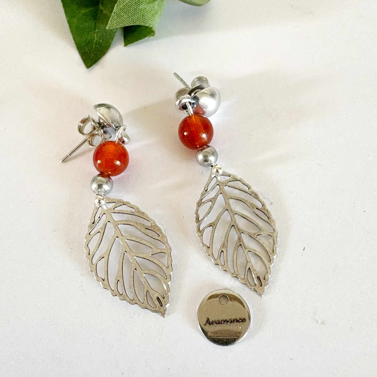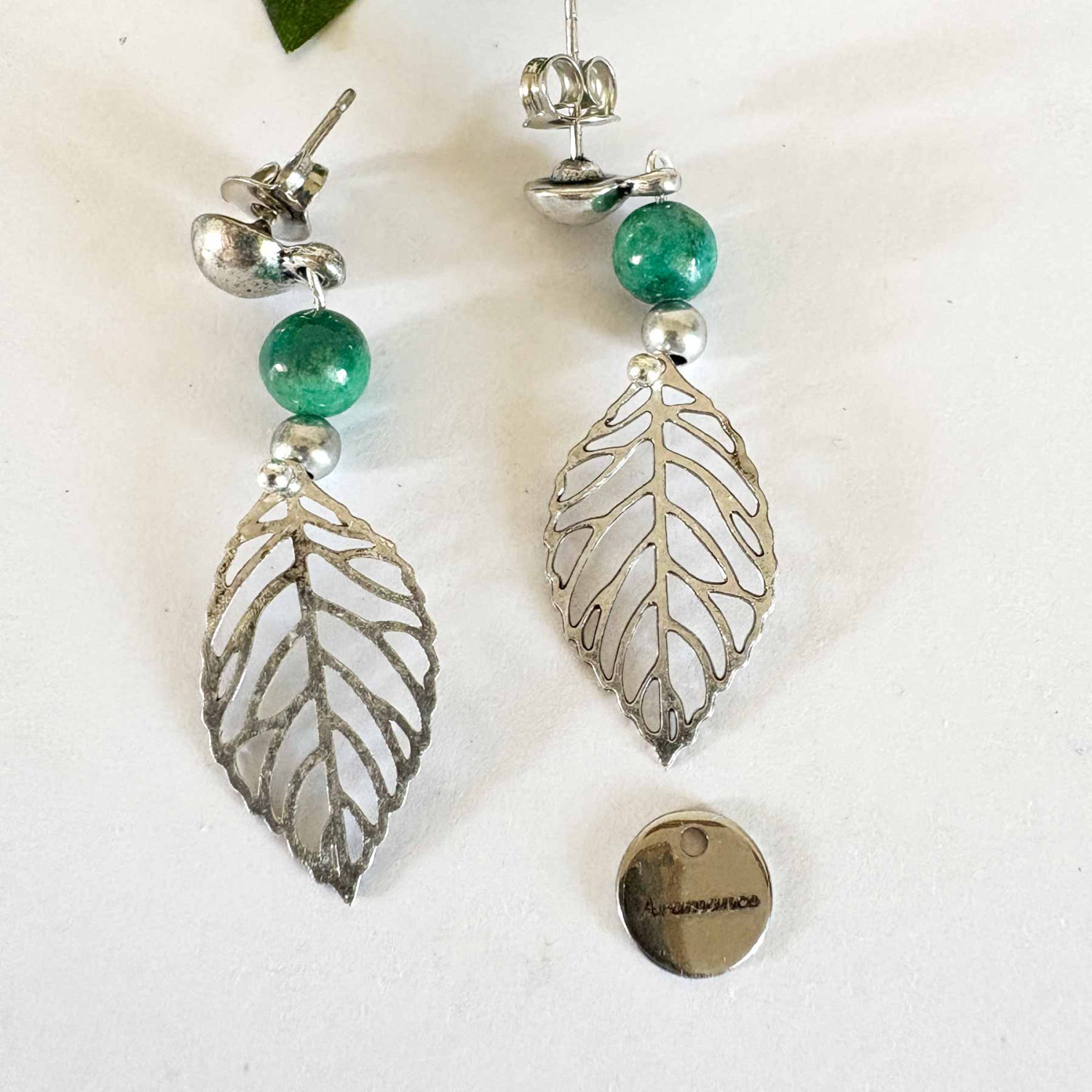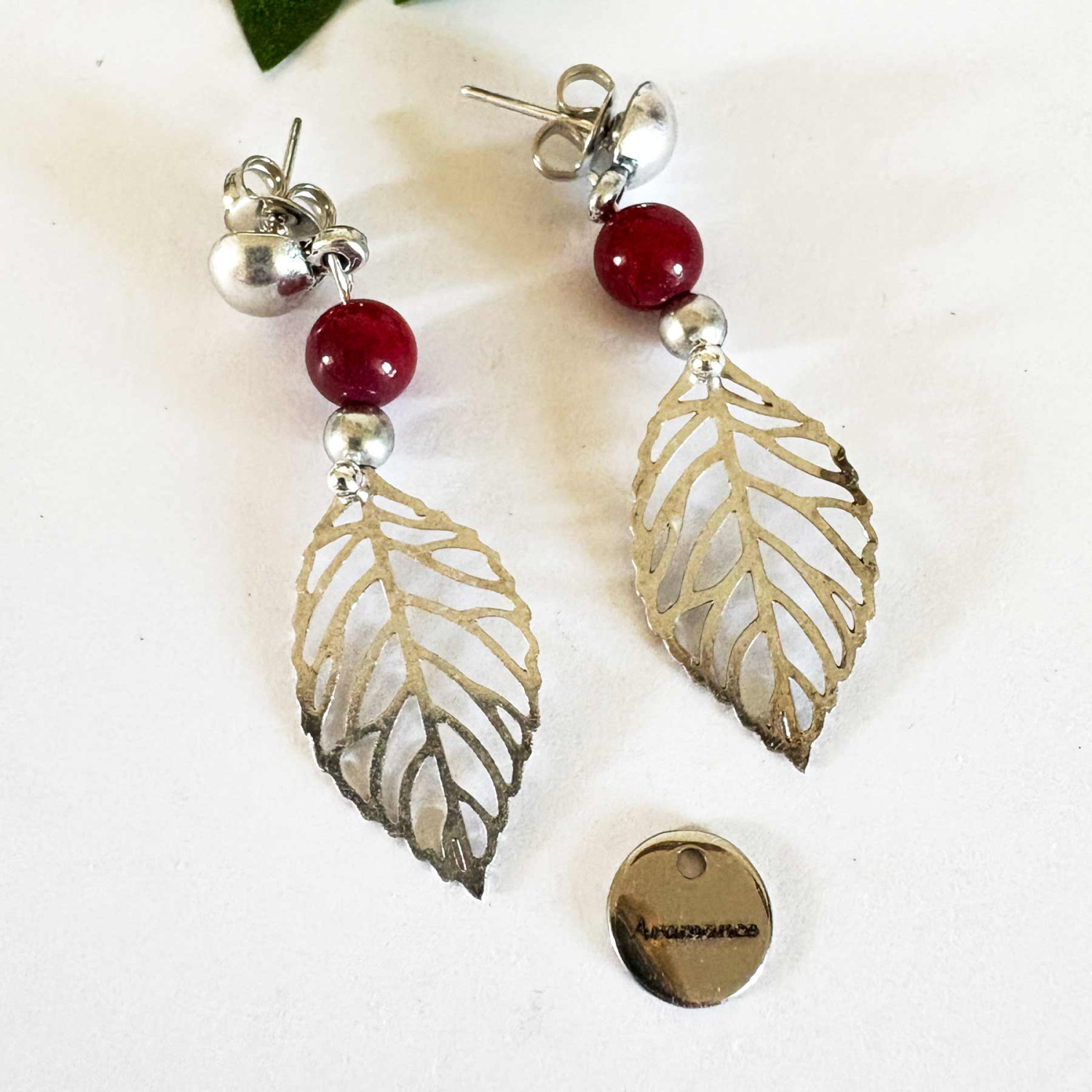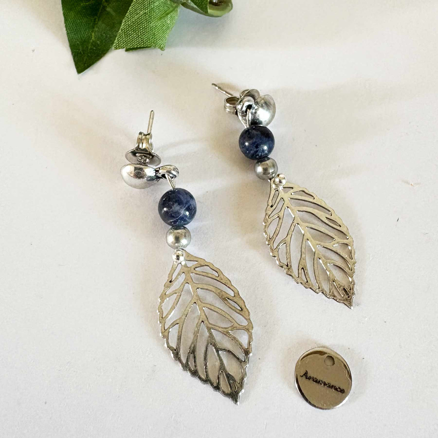 Boucles d'oreilles feuilles filigrane et pierre naturelle